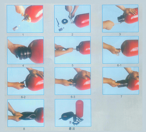 5)最后装上标牌、螺母、垫圈和充气阀; .
