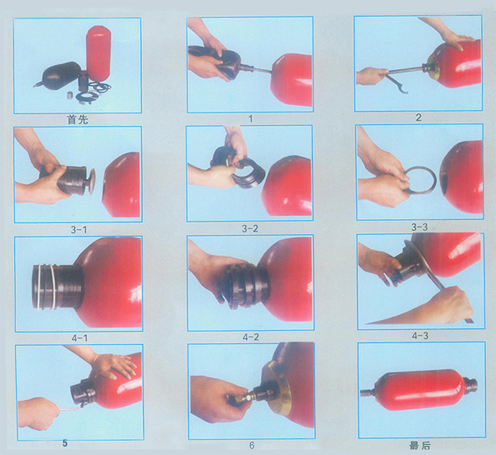 上述人哈一种维修,均在维修前先卸去蓄能器中的液压油,然后用充气工具排尽胶囊中的其他,然后才能拆卸蓄能器及各零件。